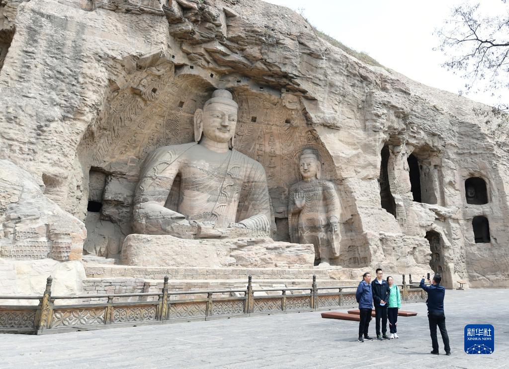 5月11日,游客在云冈石窟景区参观。新华社记者 杨晨光 摄